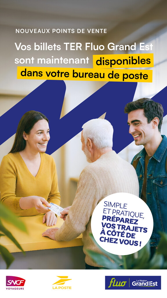 Il est désormais possible d’acheter vos billets TER Fluo Grand Est directement au bureau de poste.